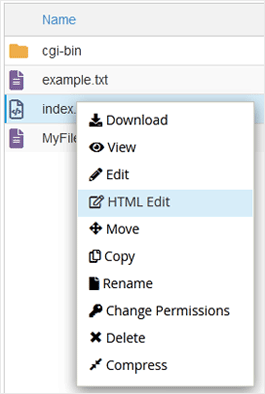 You can use cPanel's inbuilt file manager to edit files on your website. 1. Log in to your cPanel account. 2. In the Files section, click on File Manager. 3. Navigate to the directory where your file is located.4. Right-click on the file. Then click on Edit or HTML Edit in the Context Menu. 5. In the HTML Editor window, click on Edit.6. Make changes to the file and then click on Save Changes. Your file has been successfully edited.