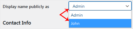 You can change the display name of your WordPress account, which shows on WordPress posts and comments. 1. Log in to the WordPress dashboard.2. From the Dashboard menu, go to Users and click on Profile.3. Locate Nickname and enter your new name.4. From the Display name publicly as, choose your newly added nickname from the drop-down menu. 5. Scroll down to the bottom of the page and click on Update Profile.